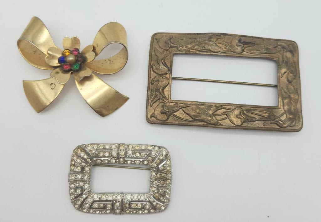 RHINESTONES (1)SILVER TONED WITH RHINESTONES & (1)GOLD TONED RECTANGLE