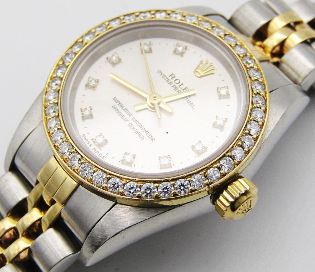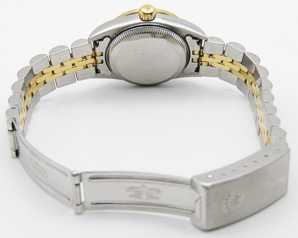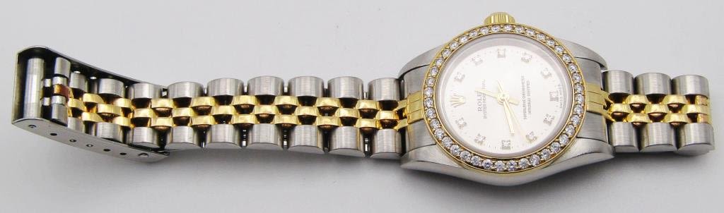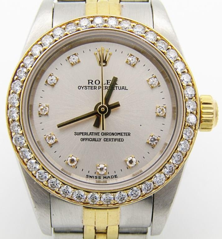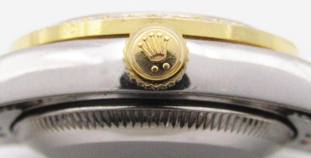 18kt gold and steel jubilee bracelet. Aftermarket diamond dial and bezel. 24 mm case circ 2001 REF: 76193