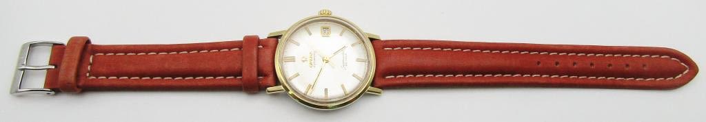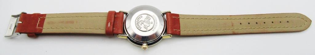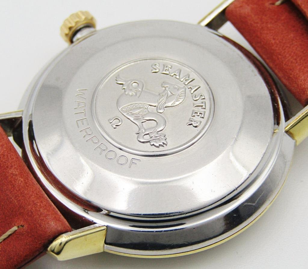 14910.62.Sc. Gold capped case with steel back, and Seamaster logo on back. 17 jewel cal 562 movement. 34 mm, and a new strap.