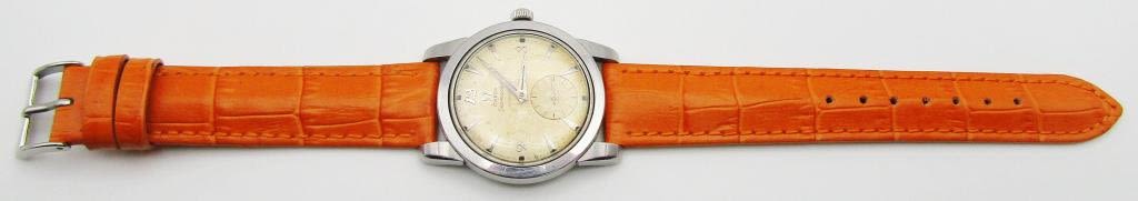Automatic. Original dial with patina stainless steel screwback case. 2576-8. 17 jewel bumper automatic cal 344. 34 mm, new strap.