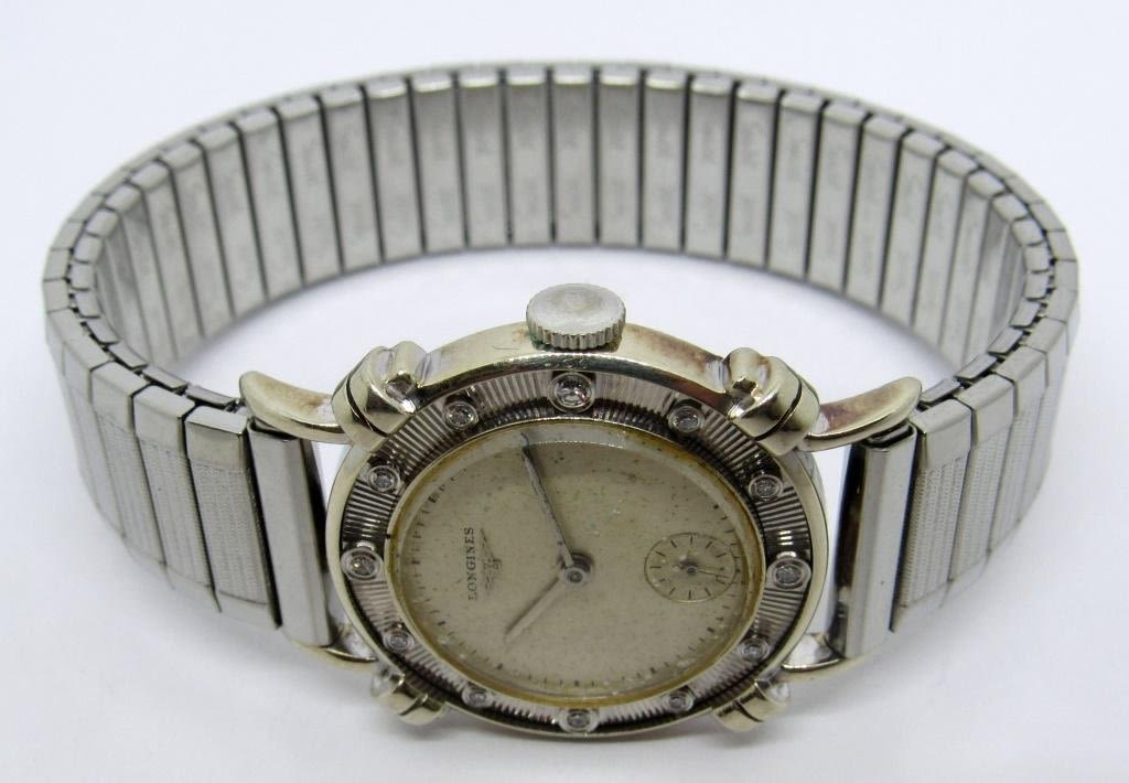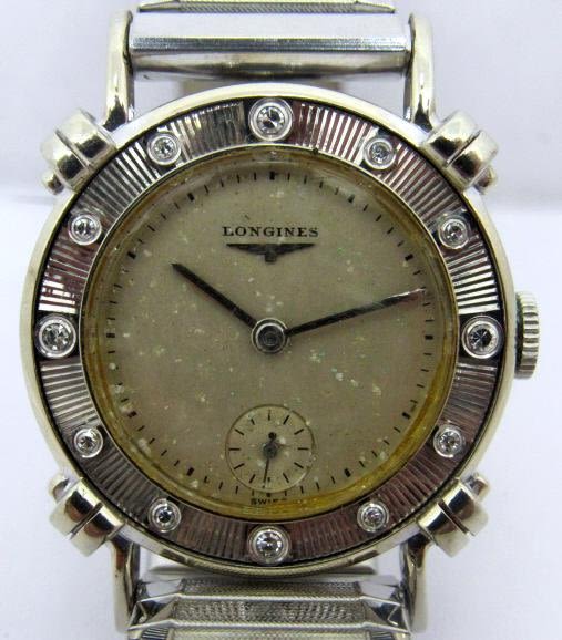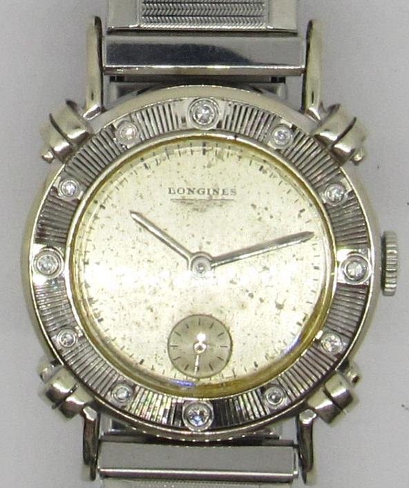 Original dial, 14kt white gold case with 12 diamonds, set on bezel, 17 jewel cal 22L movement. 29 mm diameter