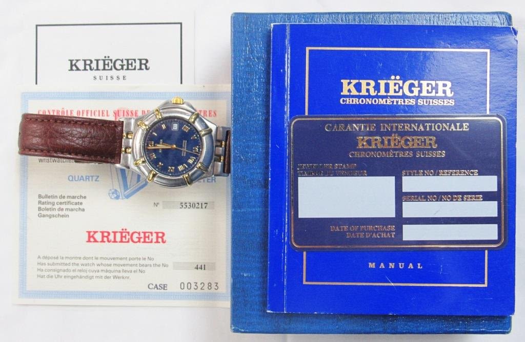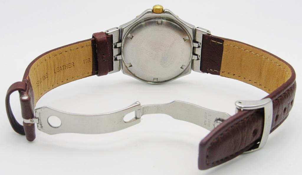 Stainless steel screwback case. Officially certified chronometer quartz movement. Stainless deployment buckle. Circ 1997 with a new strap. Complete with all books, boxes, and warranty card.