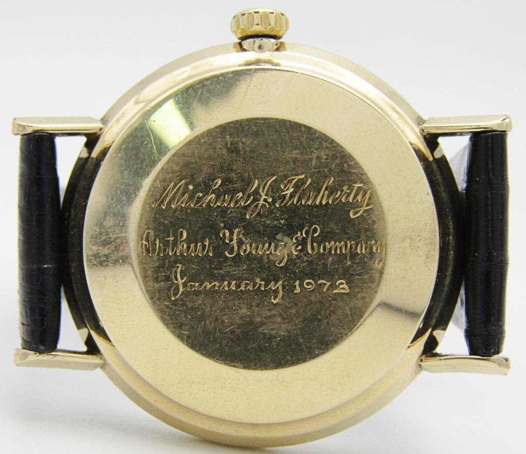 PERFECT ORIGINAL DIAL, 14kt GOLD FILLED CASE with 1973 PRESENTATION, 17 jewel, CAL 563 MOV’T, 34mm, NEW CRYSTAL AND STRAP