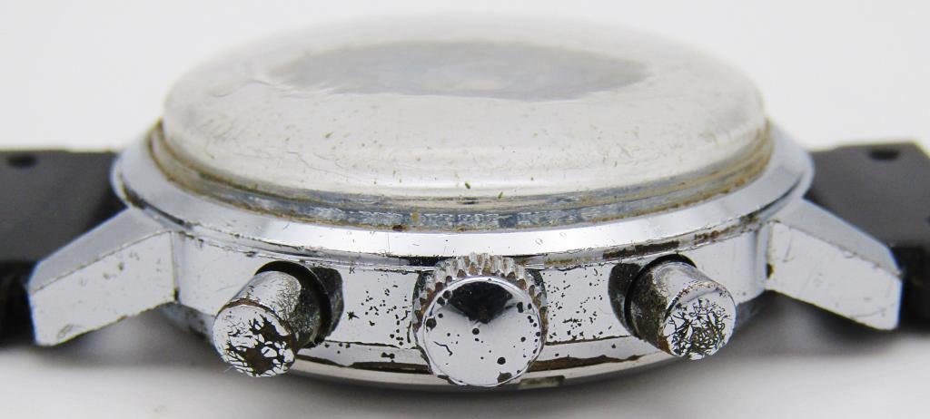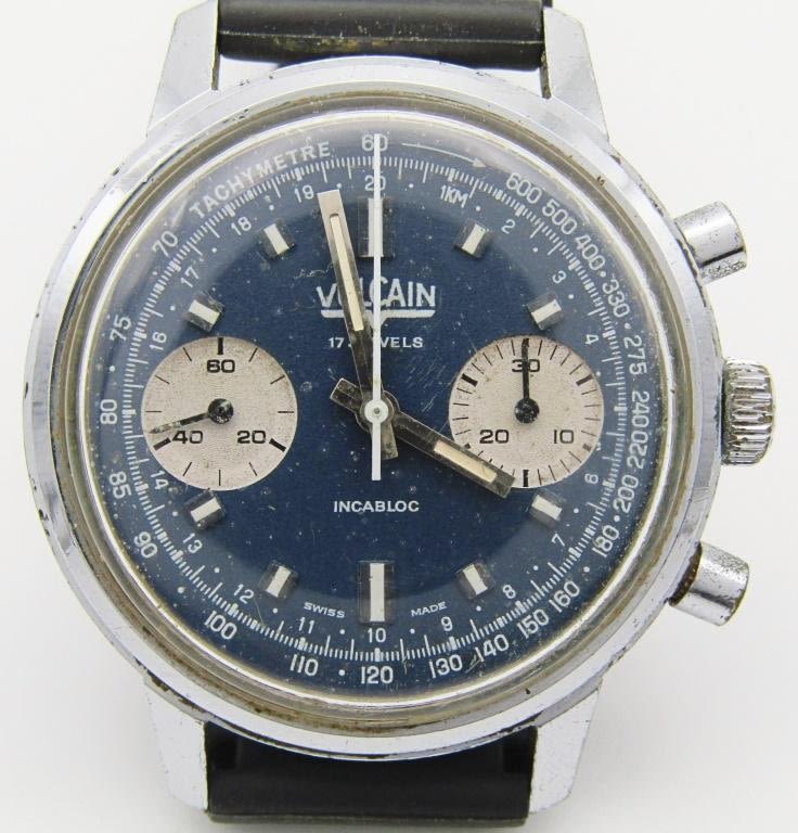 Nice Original Blue Dial Chrome/Stainless Case. 17j Valjoux Movement – Rubber Strap. Oxidation to Crown and Buttons. mm = 37