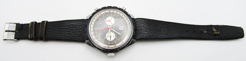Ref 1806 Chronomatic, Perfect Dial, Hands & Inner Bezel. Screwback case with Signed Crown. Caliber 11 Movement. 48 mm Case. Complete with Warranty booklet dated 1971.THIS IS ONE OF THE FIRST AUTOMATIC