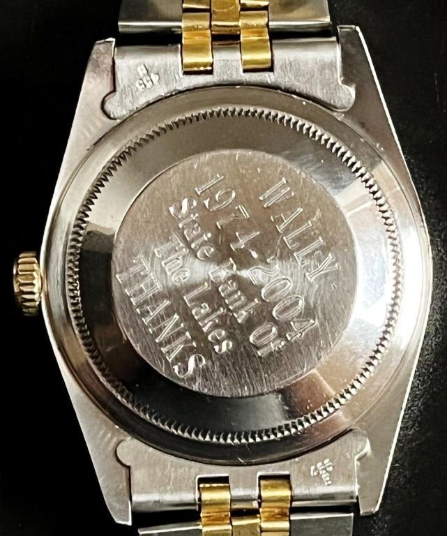 NICE SILVER DIAL, STAINLESS AND GOLD JUBILEE BRACELET, 31 jewels CAL 3135 MOVEMENT, BRACELET SHOWS SOME WEAR, CASEBACK WITH PRESENTATION 2004, 36mm, 2 EXTRA LINKS, SERIAL NUMBER E All Watches in Running Order