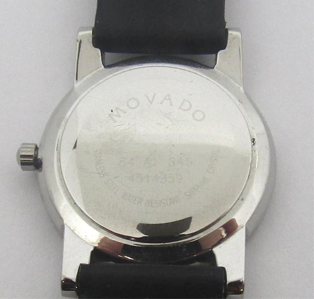 Perfect Black Dial, Stainless Case 84 AI 845, Quartz Mov’t with Fresh Battery, Strap Signed Movado, 25 mm.