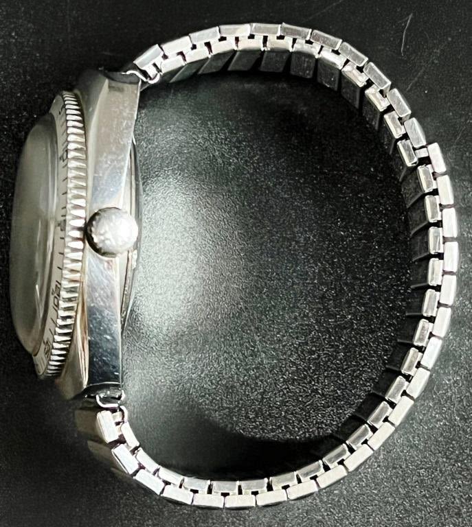PERFECT ORIGINAL DIAL, STAINLESS SCREWBACK CASE, 17 jewel CAL 508 MOV’T, CASE REFERENCE 507-1007, 37mm, VINTAGE STEEL STRETCH BANK All Watches in Running Order when catalogued Unless otherwise noted.