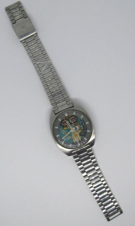 Perfect Chapter Ring and Hands, Chunky Stainless Case Marked NO, Stainless Accutron Marked Bracelet, mm = 38. Nice watch with matching bracelet! CIRC 1970