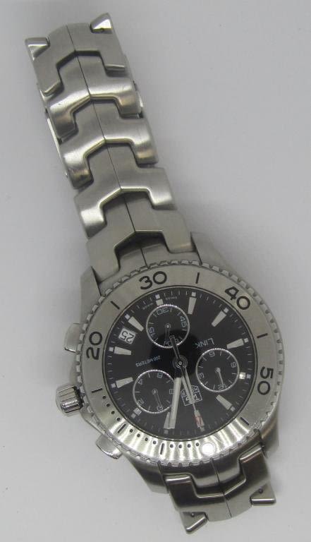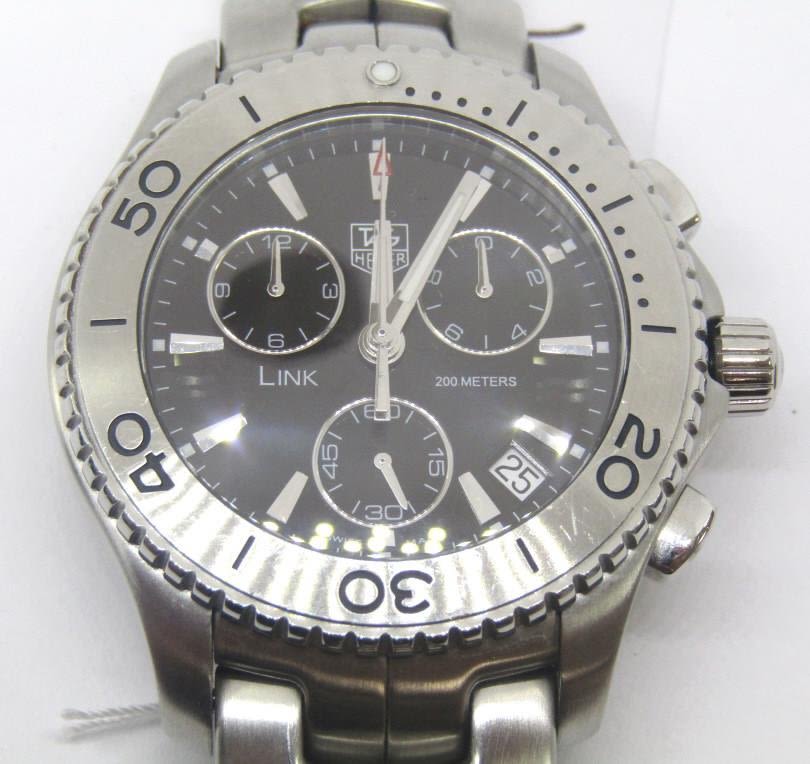 Stainless Steel Screwback Case and Bracelet, Case Reference CJ1110; Perfect Black Dial and Crystal, Rotating Bezel; Quartz Movement – ETA 251,262, 42 mm; Nice Condition!
