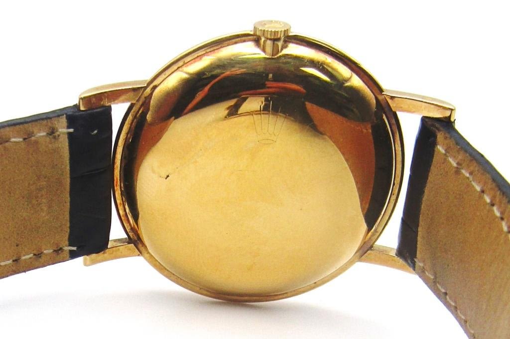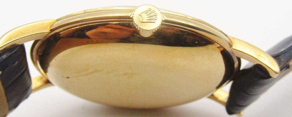 Engine Turned Bezel, Nice Cream Waffle Dial; 18 Jewel Manual Wind Sweep Sec. Movement, Case Reference 8952, 34mm; Rolex Plaque Buckle.