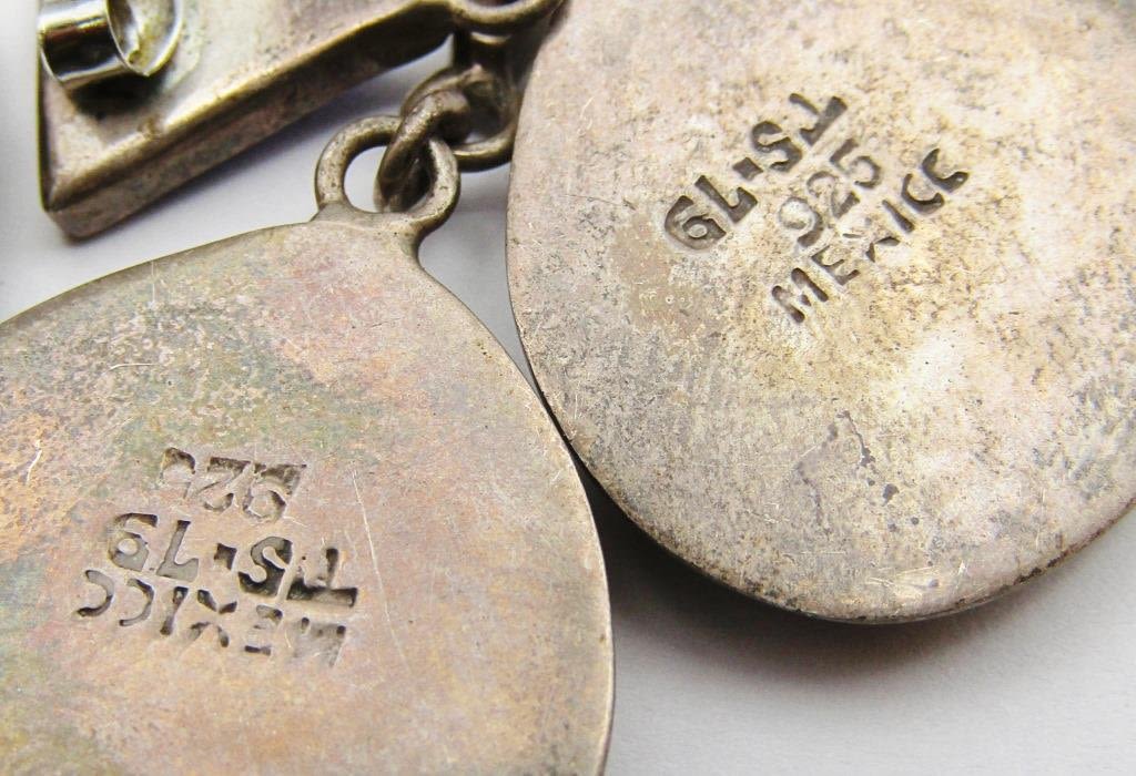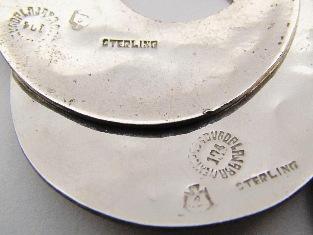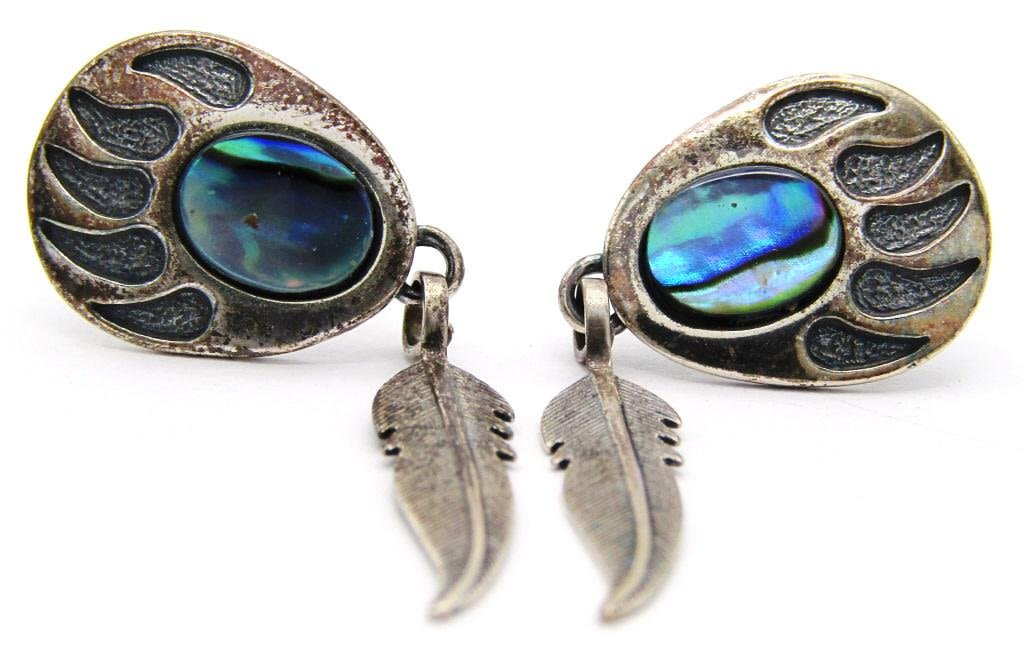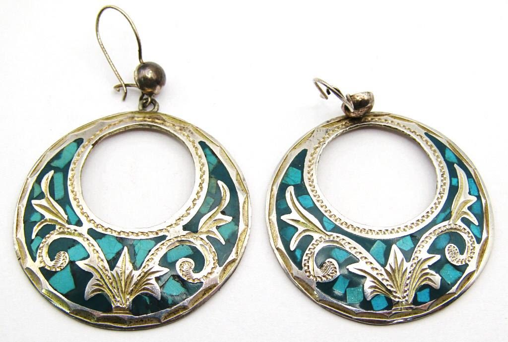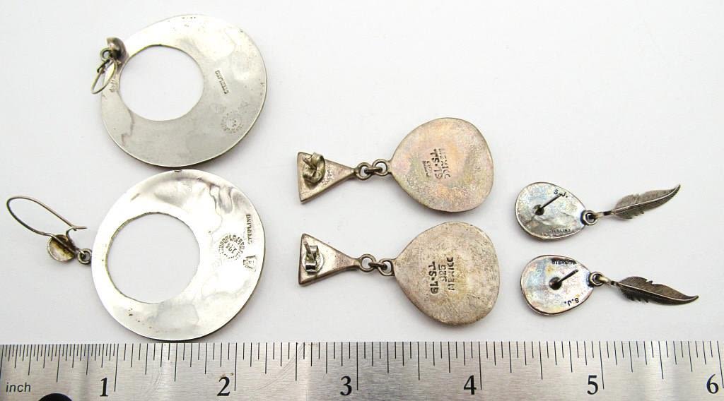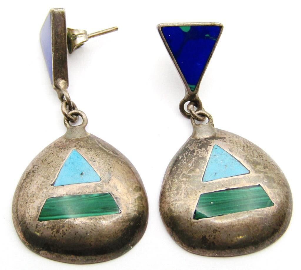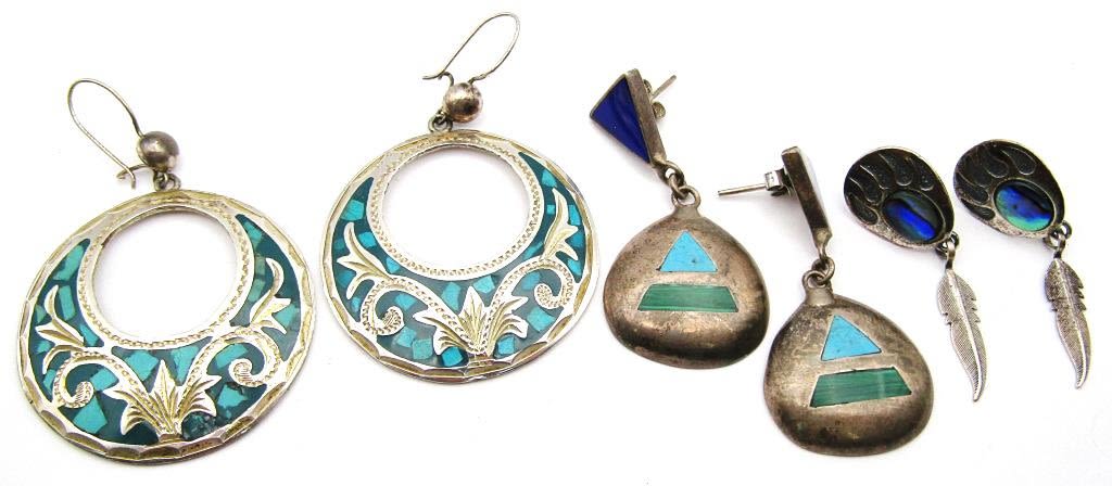 EARRINGS-TURQUOISE-MALACHITE-ABILONE (1)TS-79 MEXICO (1)MARKED "SJ" (1)MARKED MEXICO-TOTAL 19 DWT