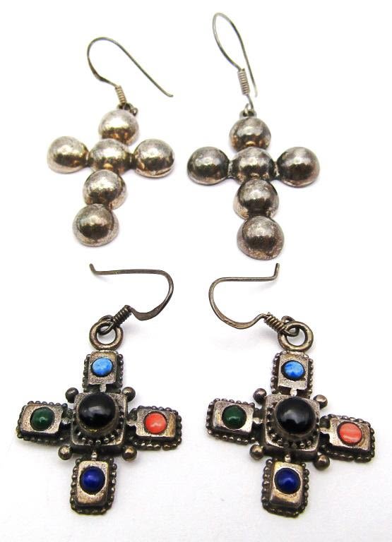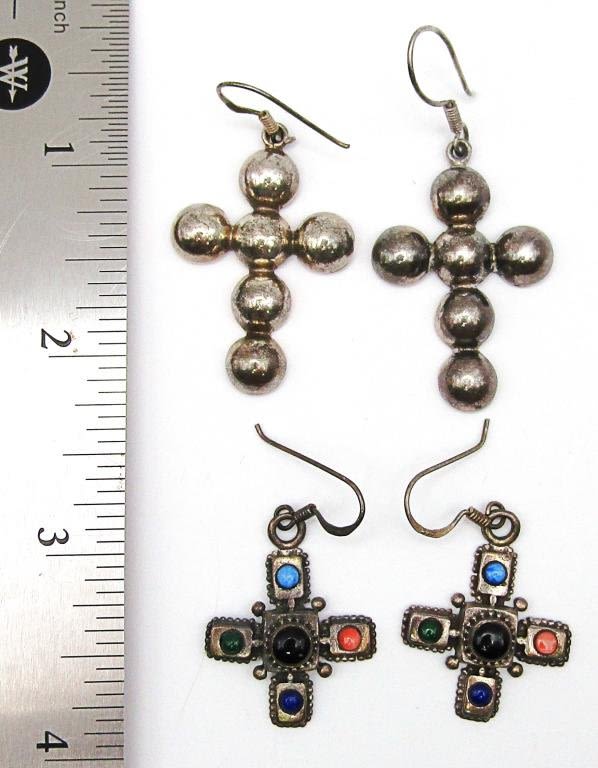 CROSS EARRINGS (1)WITH STONE DESIGN (1)MARKED MEXICO-TOTAL 11 DWT