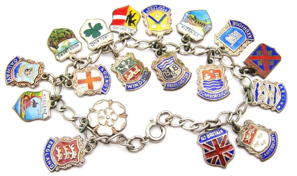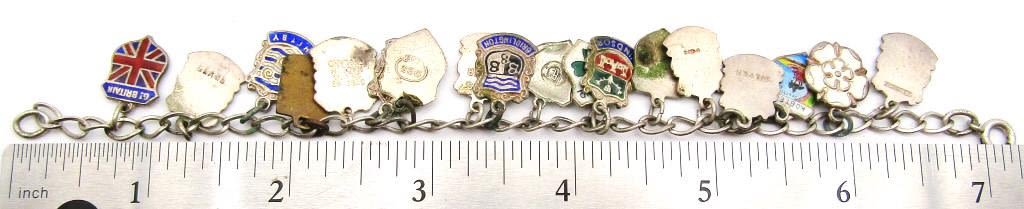 LOADED WITH FOREIGN COUNTRY CHARMS-ENAMEL-MEASURES 7 INCHES-TOTAL 16 DWT