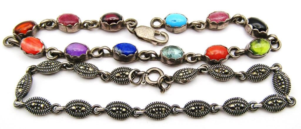 (1)WITH MULTI COLORED STONES-BOTH MEASURES 7 INCHES-TOTAL 9 DWT