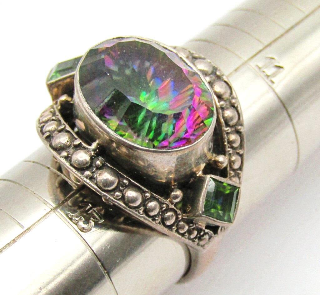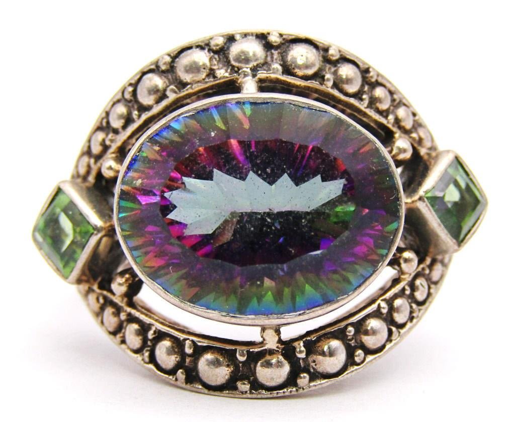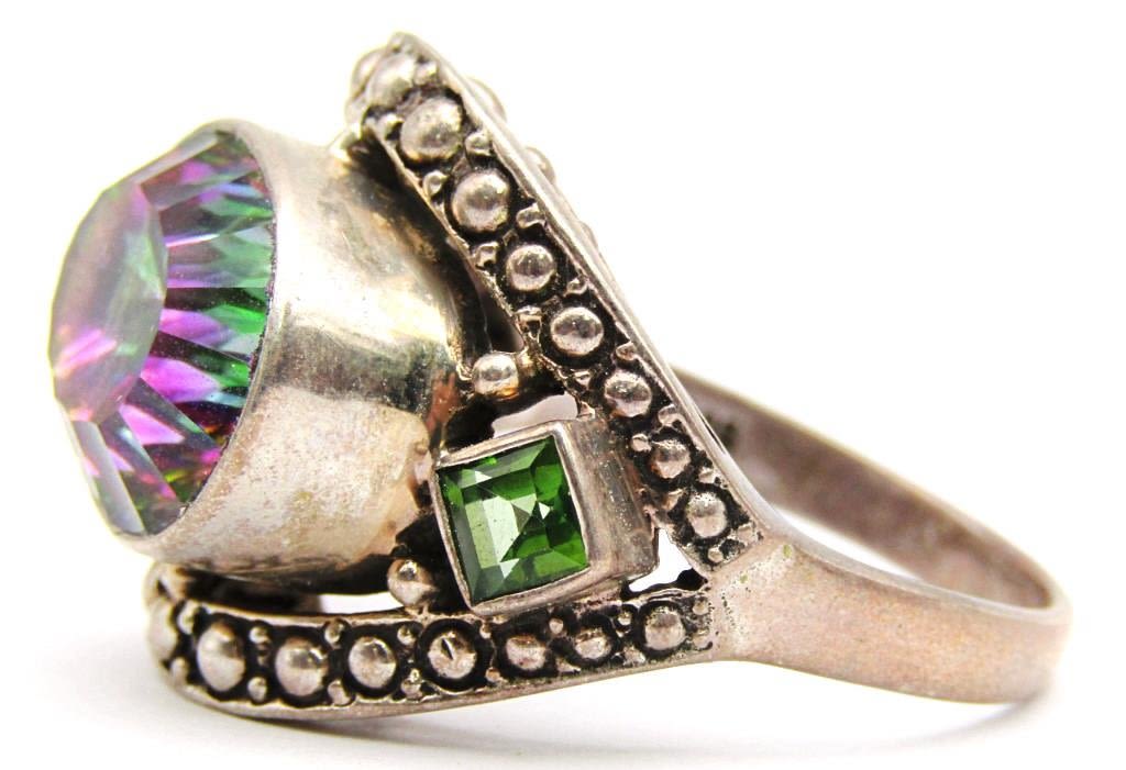 PURPLE & GREEN CENTER STONE-RING SIZE 12-TOTAL 7 DWT
