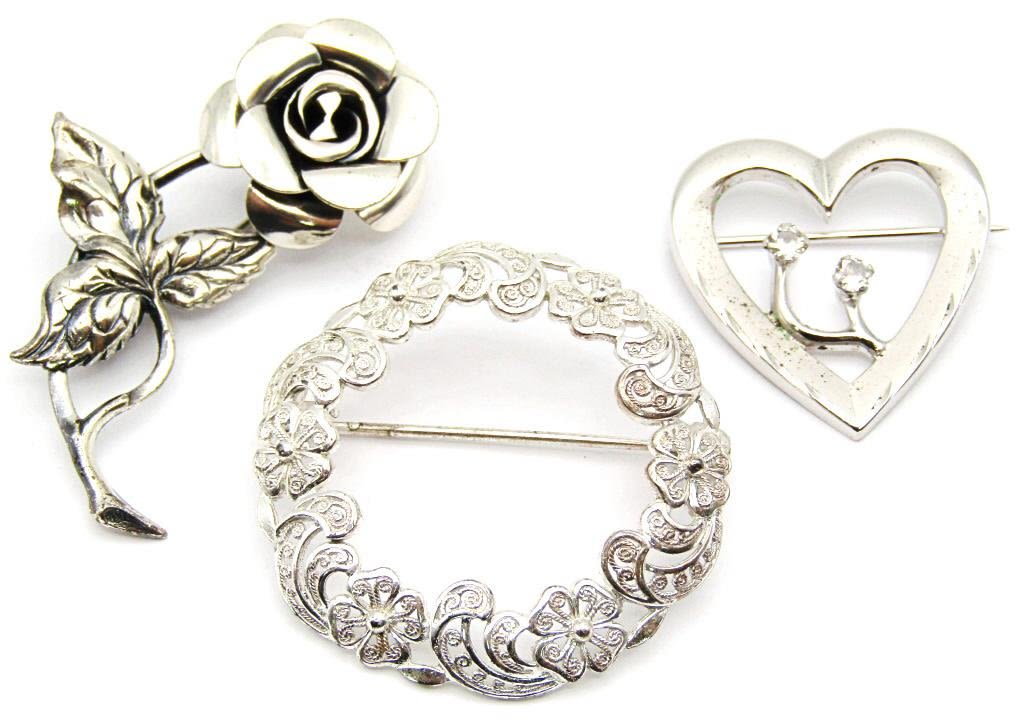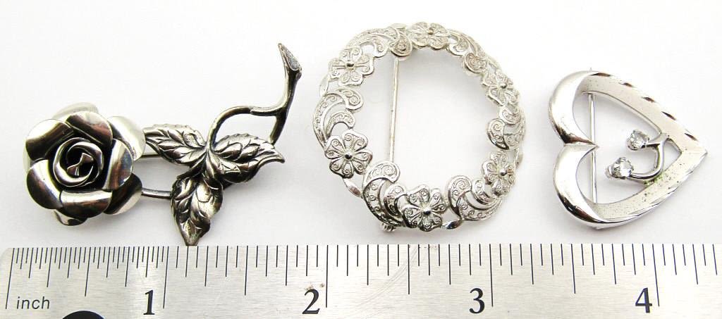 3-VINTAGE STERLING BROOCHES: (1)MARKED GERMANY