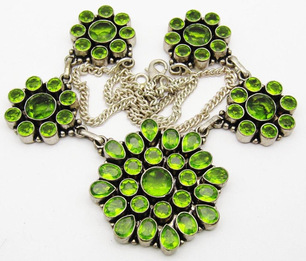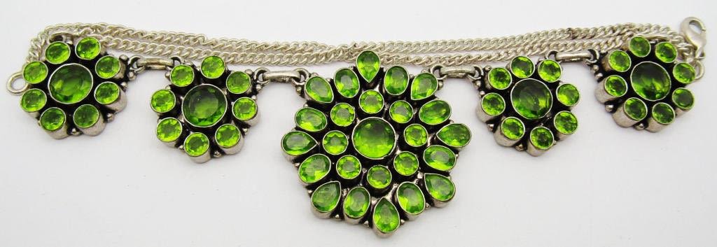 LOADED WITH GREEN STONES! MEASURES 19 INCHES-TOTAL 31 DWT