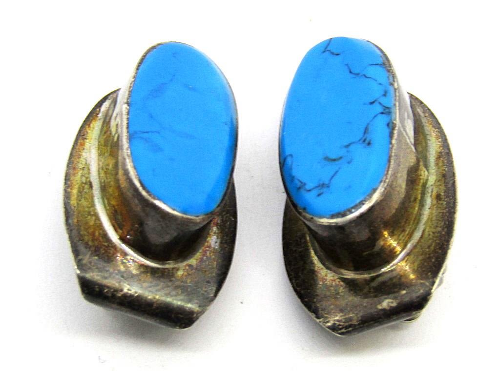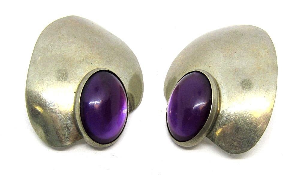 (1)TURQUOISE INLAY CLIP ON & (1)ANNA PIERCED WITH PURPLE STONE-TOTAL 16 DWT