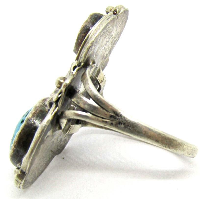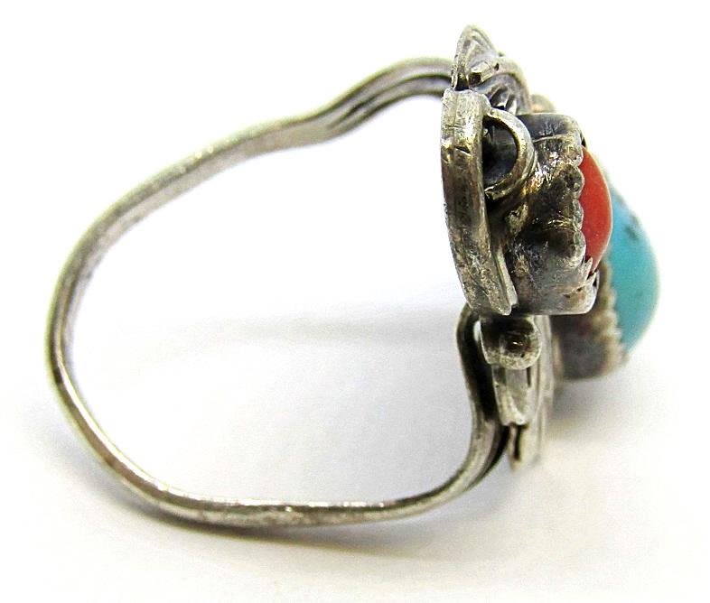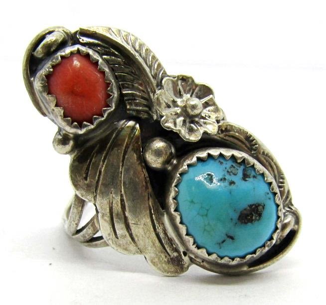 RED CORAL AND TURQUOISE STONE-LEAF DESIGN-RING SIZE 6-TOTAL 4 DWT