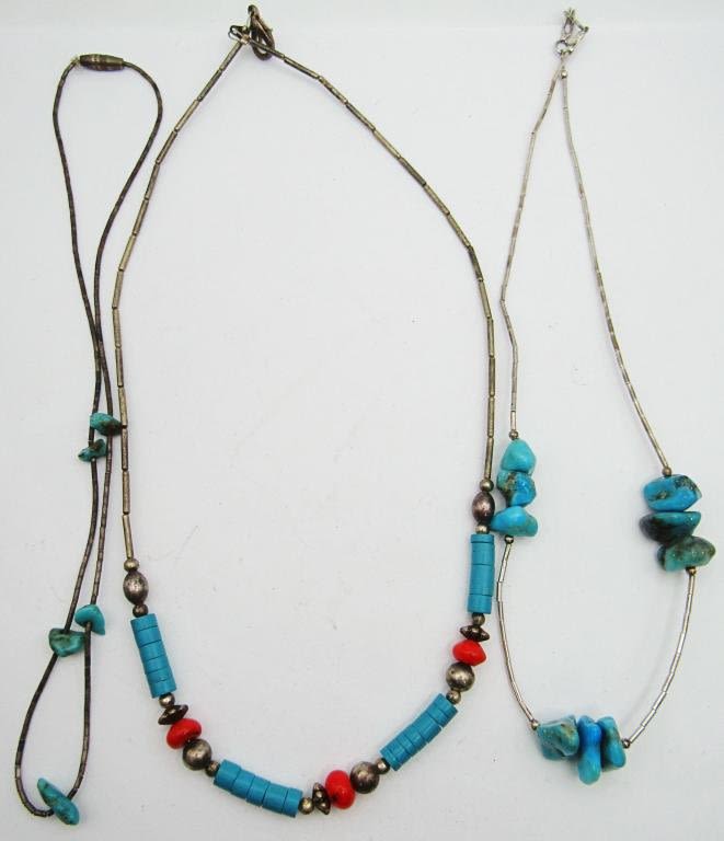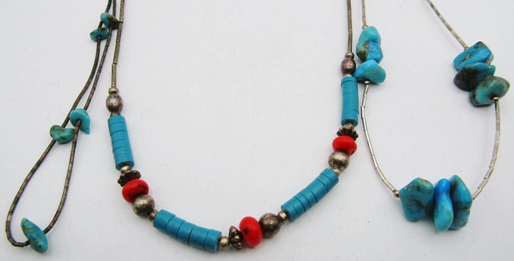 DIFF LENGTHS/DESIGNS-TURQUOISE AND RED CORAL ACCENTS-TOTAL 14 DWT