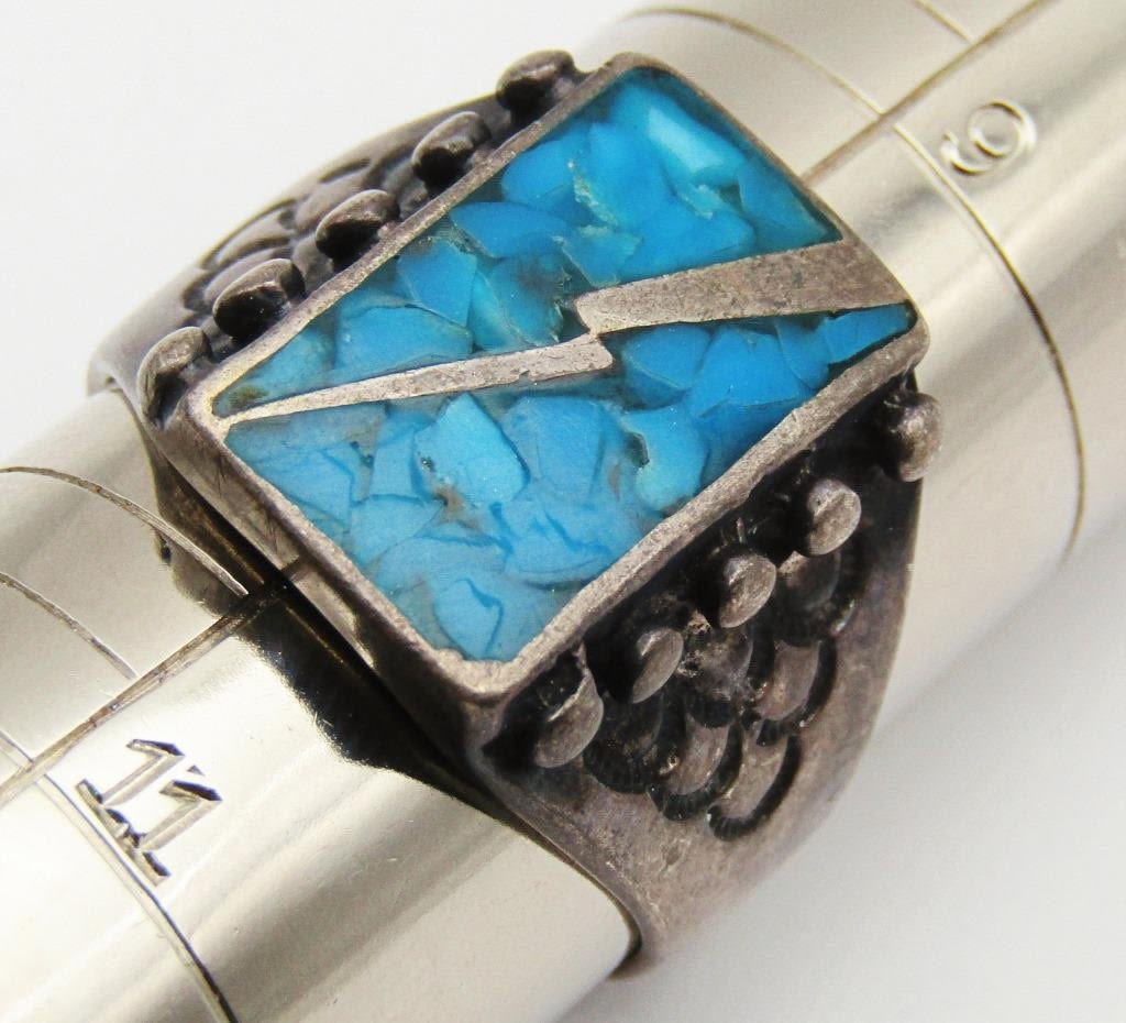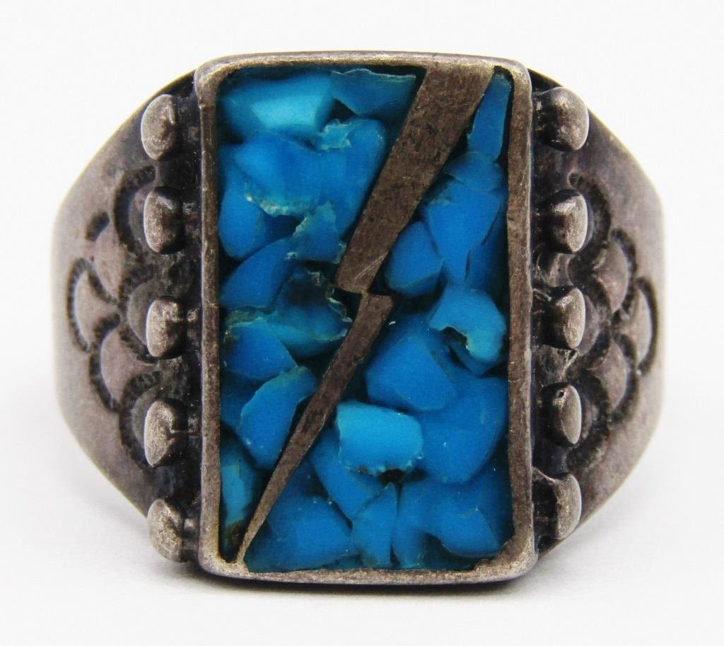 RING WITH CHIPPED TURQUOISE INLAY STONE DESIGN-TOTAL 6 DWT