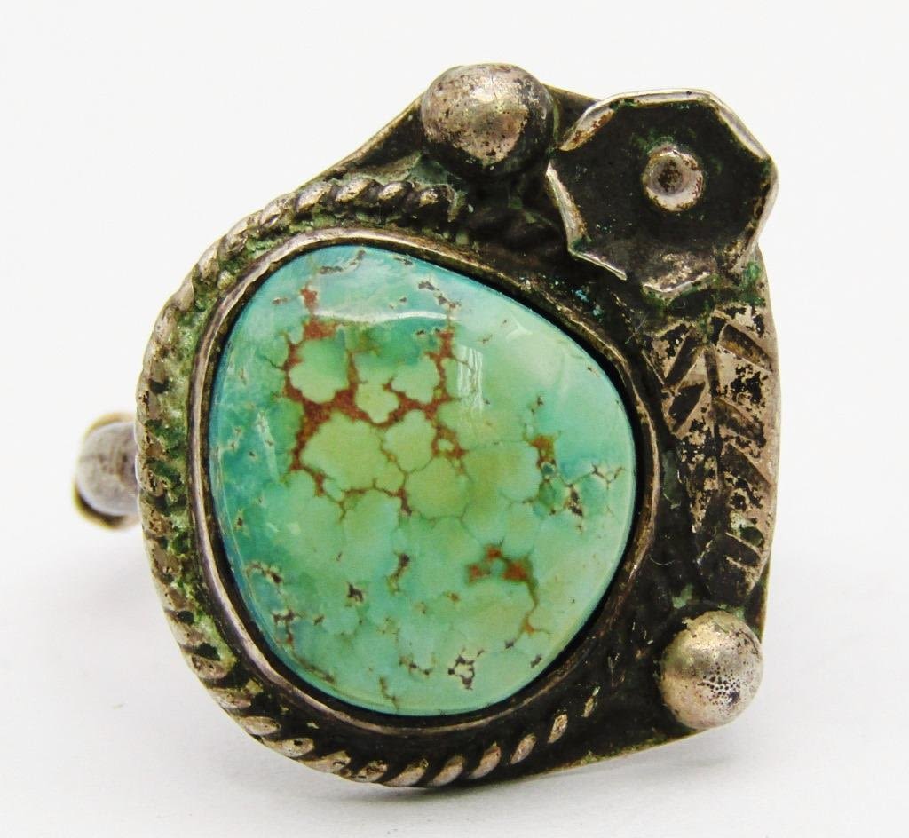 TURQUOISE CENTER STONE-LEAF DESIGN-RING SIZE 5-TOTAL 3 DWT