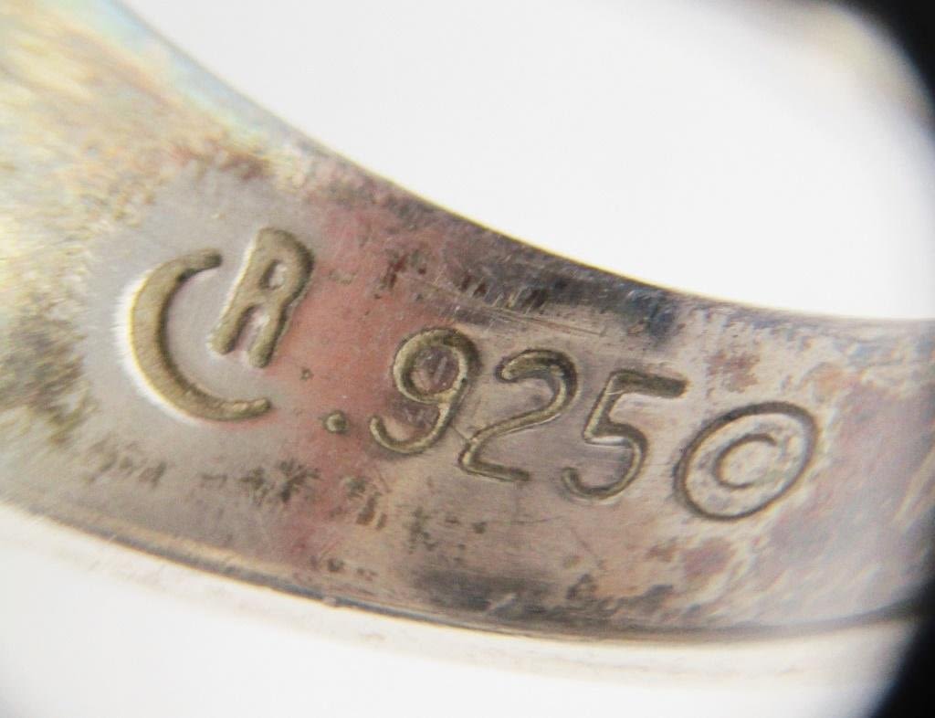 WITH STONE INLAY DESIGN-RING SIZE 9-TOTAL 7 DWT