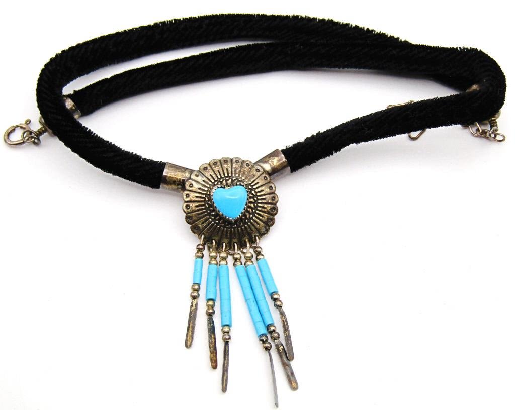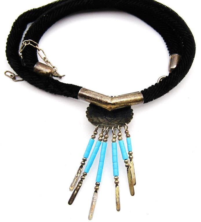 WITH DANGLY TASSLES-SLEEPING BEAUTY CENTER STONE-ATTACHED TO VELVET CHAIN-MEASURES 18 INCHES-TOTAL 6 DWT