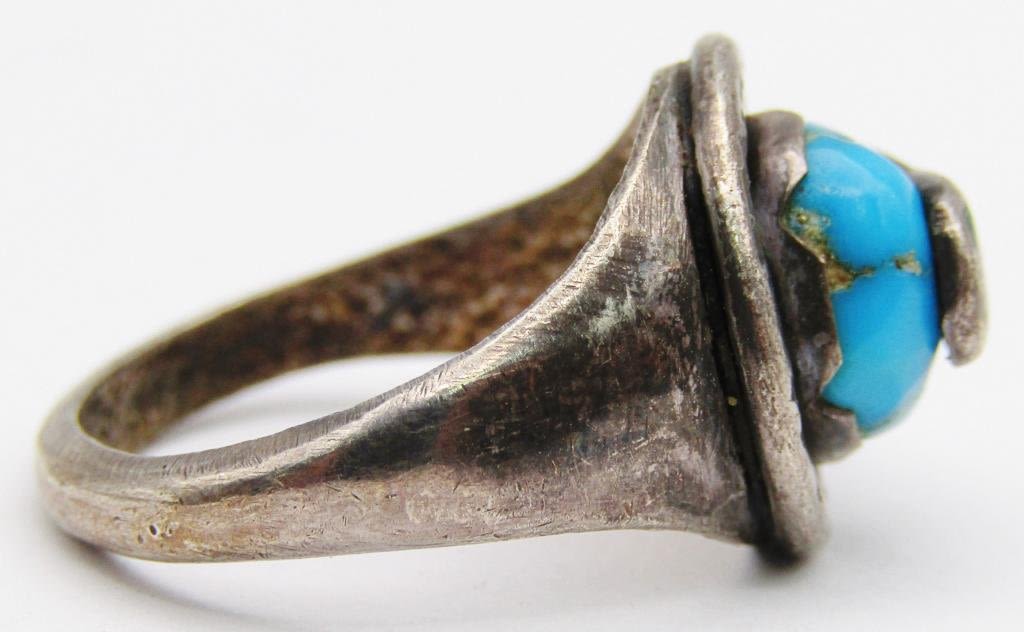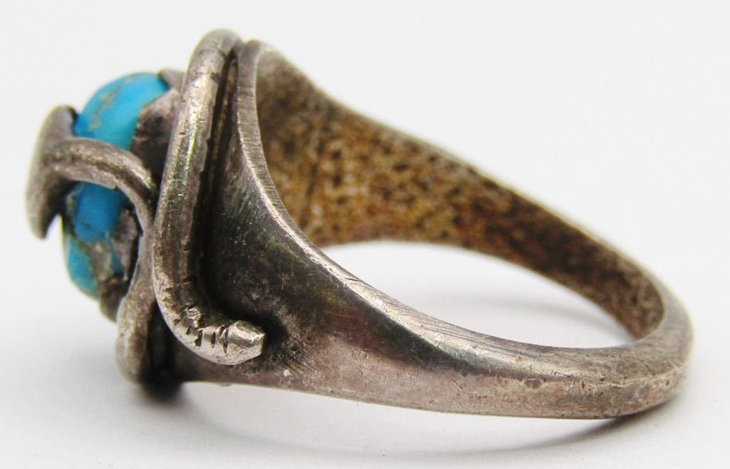 WITH TURQUOISE CENTER STONE-RING SIZE 7.5-TOTAL 4 DWT