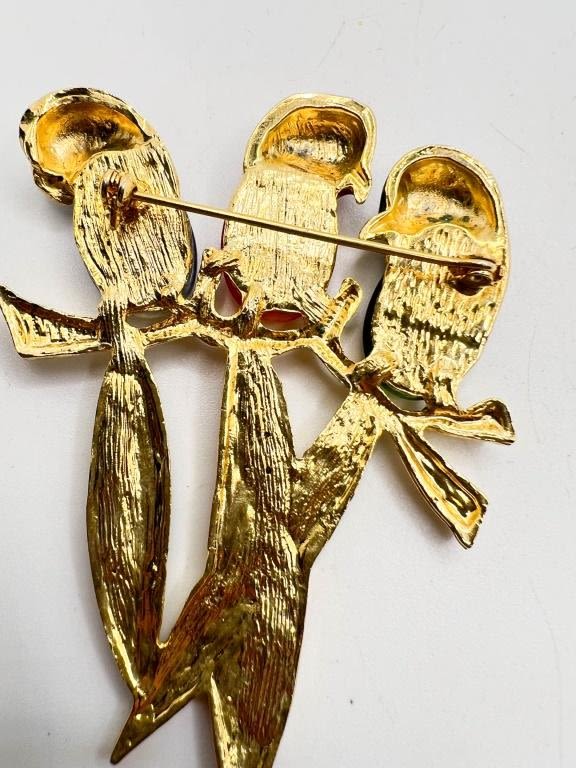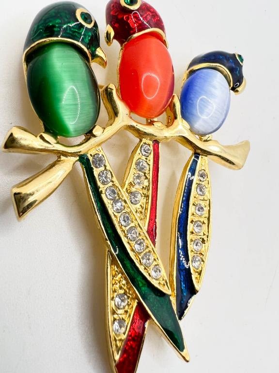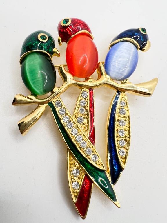 LARGE TROPICAL BIRD BROOCH W STONES, COLORFUL STONES, SO PRETTY