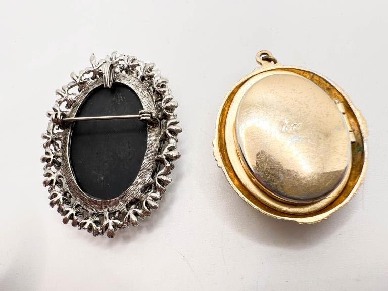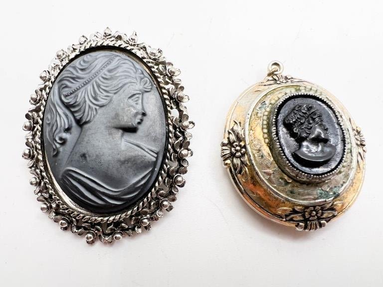 TWO BLACK CAMEO, ONE LARGE BLACK CAMEOM ONE SMALLER SIGNED CORO