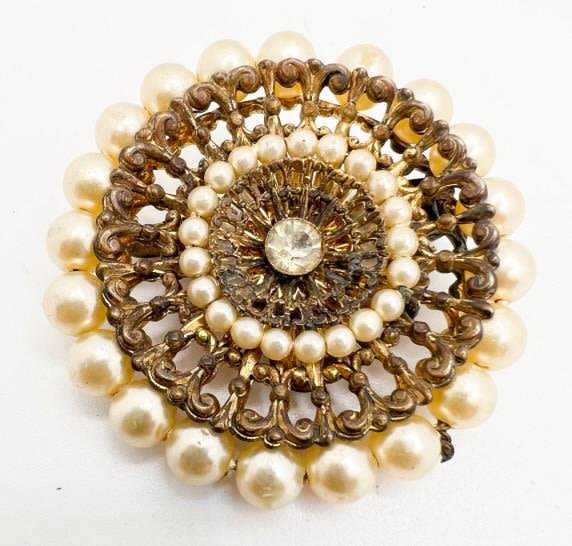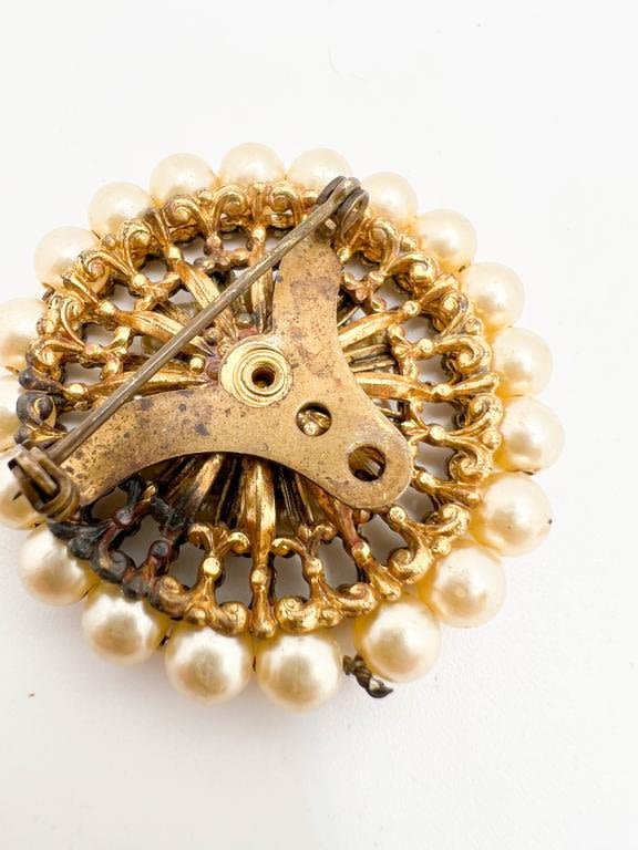 PRETTY VINTAGE BROOCH W FAUX PEARLS