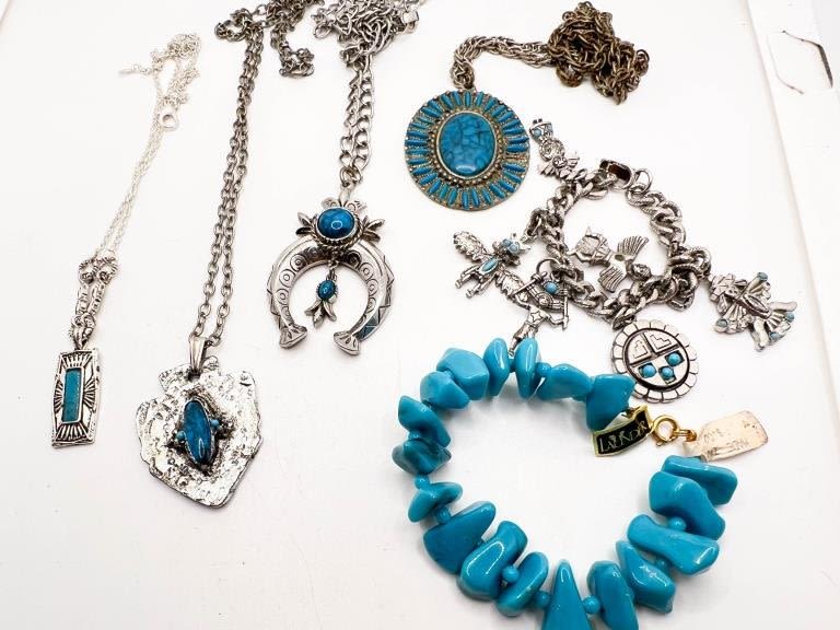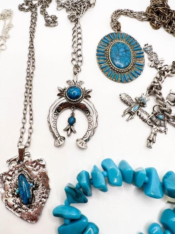 SQUASH BLOSSOM NECKLACE + OTHER TURQUISE ASSORTMENT , BRACELETS , PENDANTS +