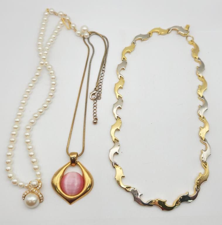 NECKLACES ASSORTMENT , DOLPHINS, STONE , FAUX PEARLS