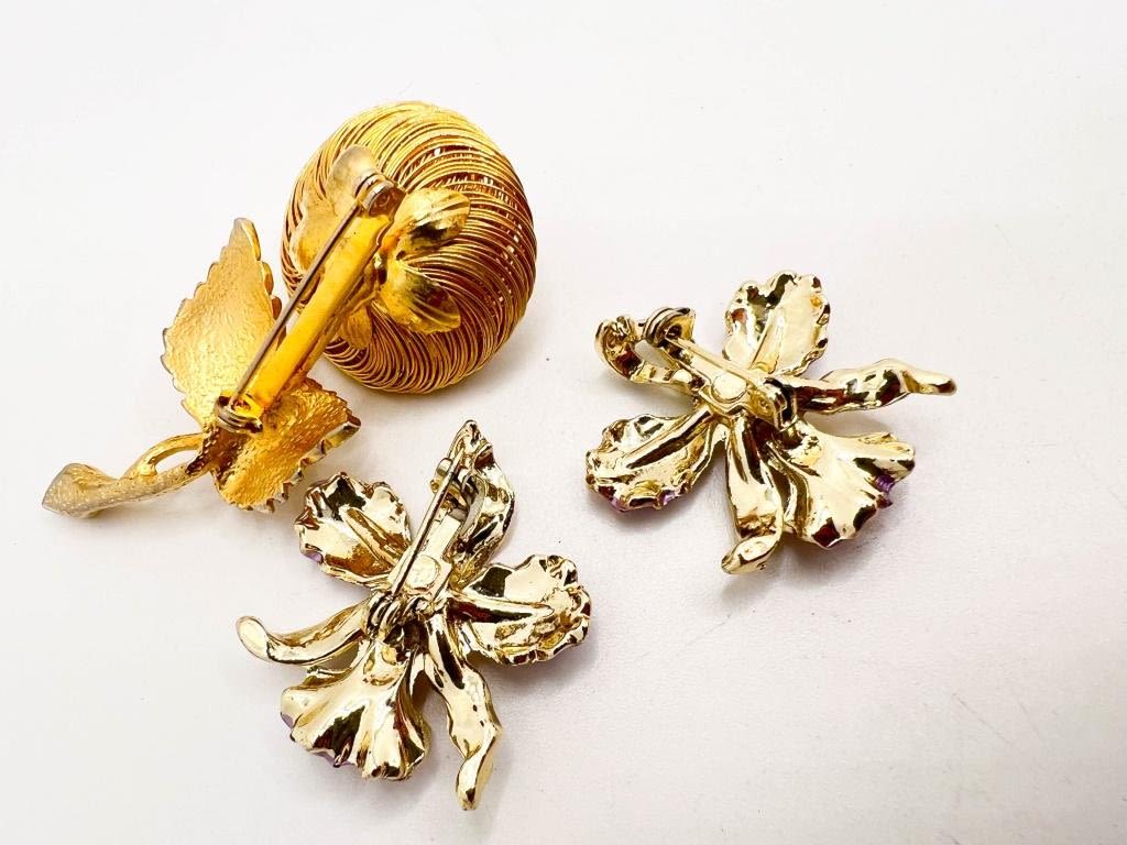 3 FLORAL BROOCHES , GOLD TONE, NICE