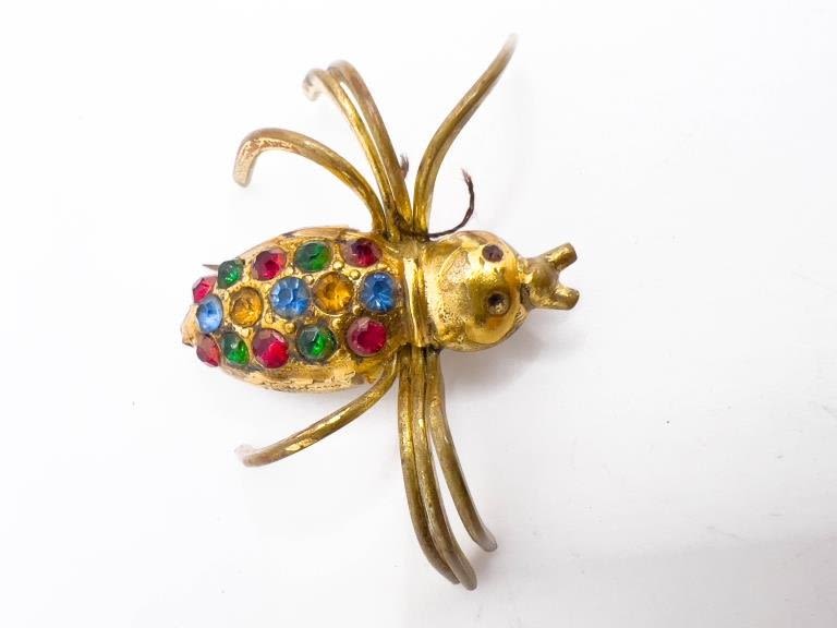 C CLASP SPIDER BROOCH W STONES, ANTIQUE ?