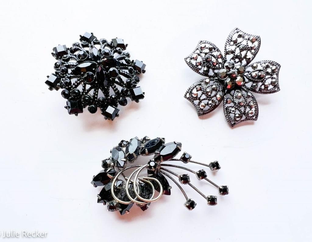 ELEGANT BROOCH TRIO BLACKS, BOWS AND CRIRCLES BLACKS