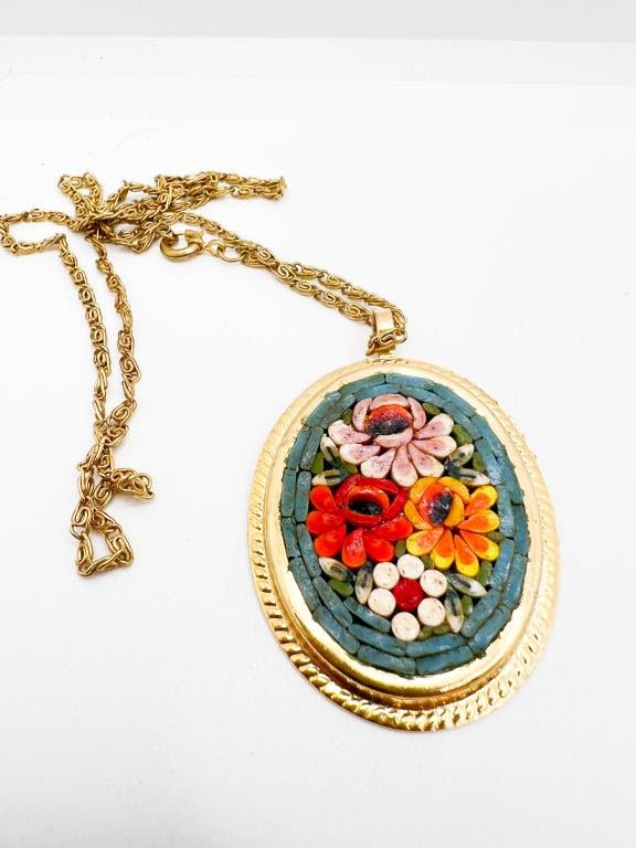 MOSAIC STONE PENDANT W CHAIN NECKLACE