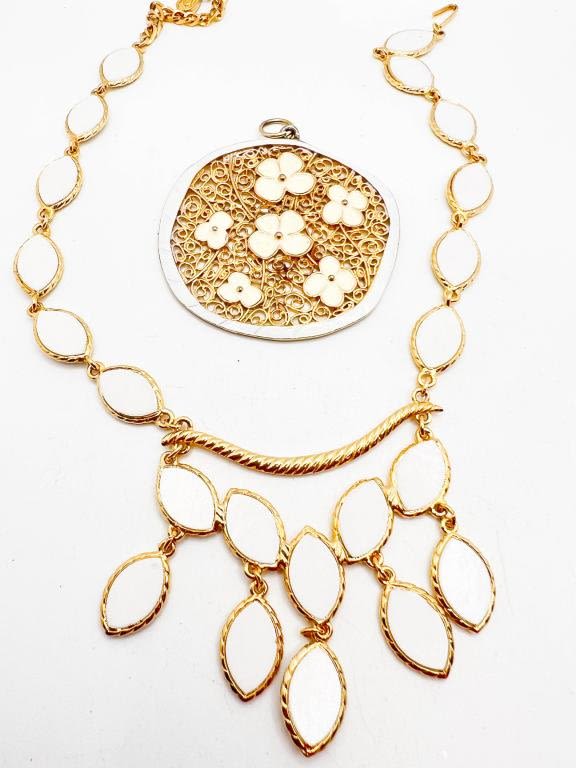 NECKLACE AND LARGE WHITE FLORAL PENDANT