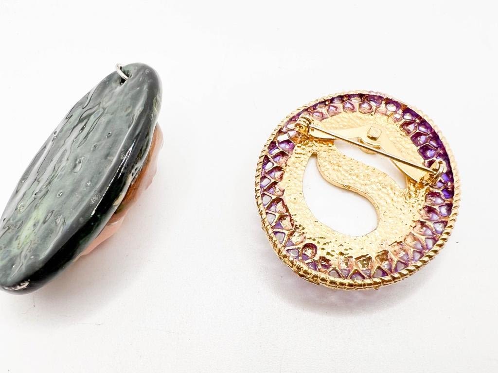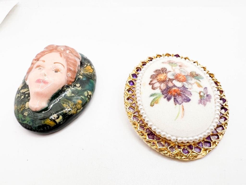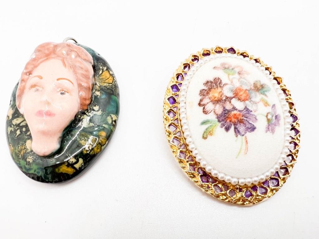 TWO CAMEO BROOCHES , LARGE FLORAL AND LADY