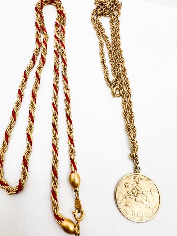 TRIFARI RED AND GOLD INTERWOVEN NECKLACES AND COVENTRY SIGNED NECKLACE