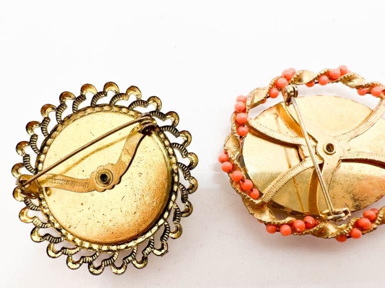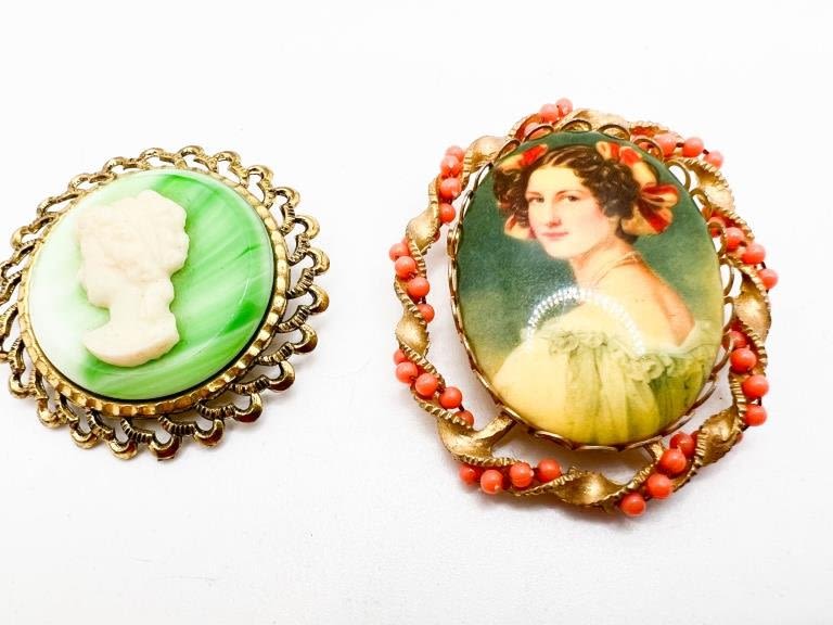 TWO CAMEO BROOCHES , LARGE SIZE + LADY