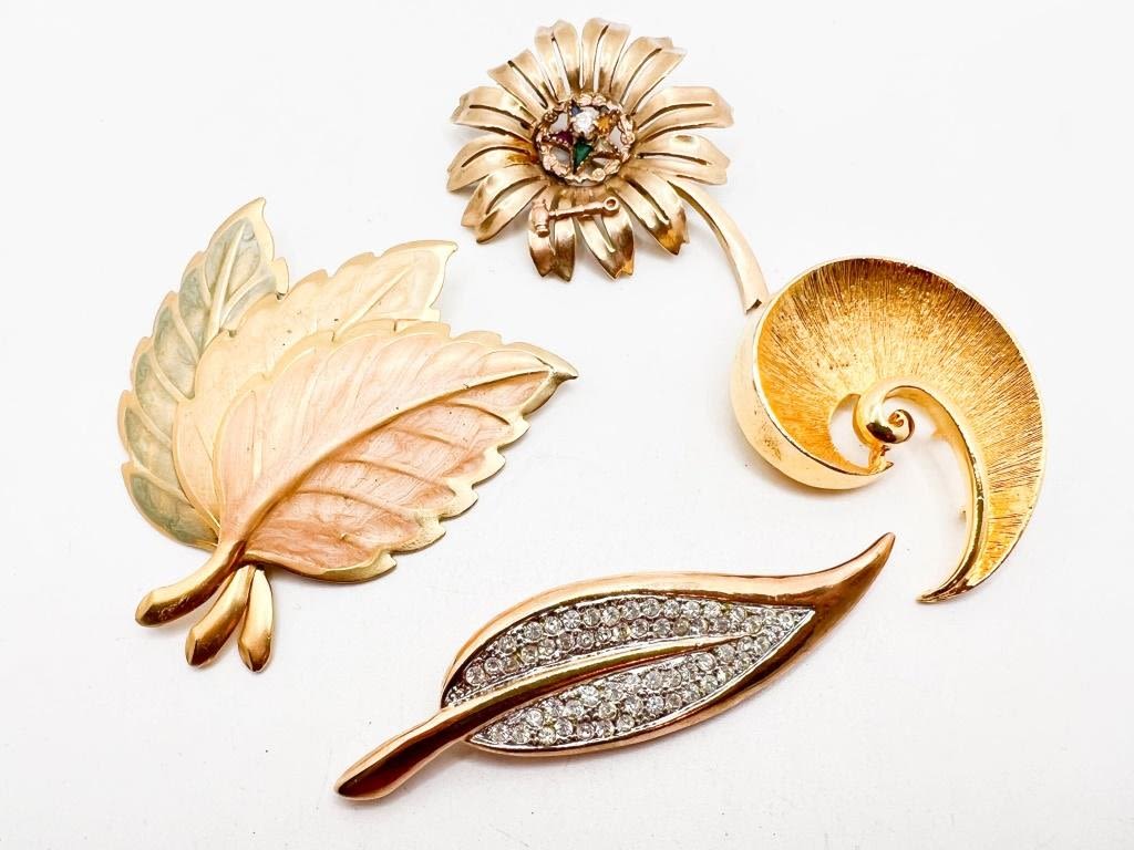 4 BROOCH, VINTAGE + , LEAVES, FLORALS AND MORE