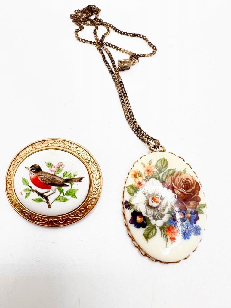 AVON SPRING ROBIN NECKLACE + FLORAL PENDANT NECKLACE