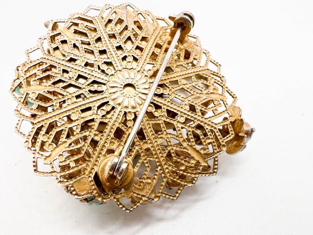 SCHREINER? EARLY KRAMER? AMAZING BROOCH W DOG TOOTH PRONGS, EXQUISITE SETTINGS, MULTI COLOR STONES, JUSET AWESOME !