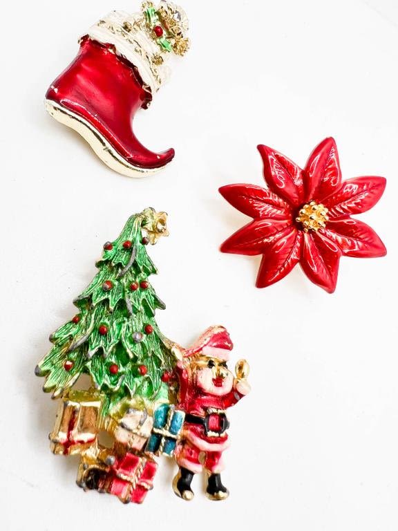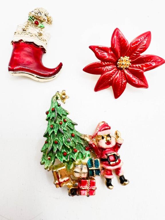 CHRISTMAS LOT BROOCHES, ONE SIGNED BOOT