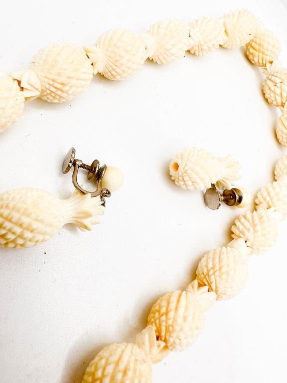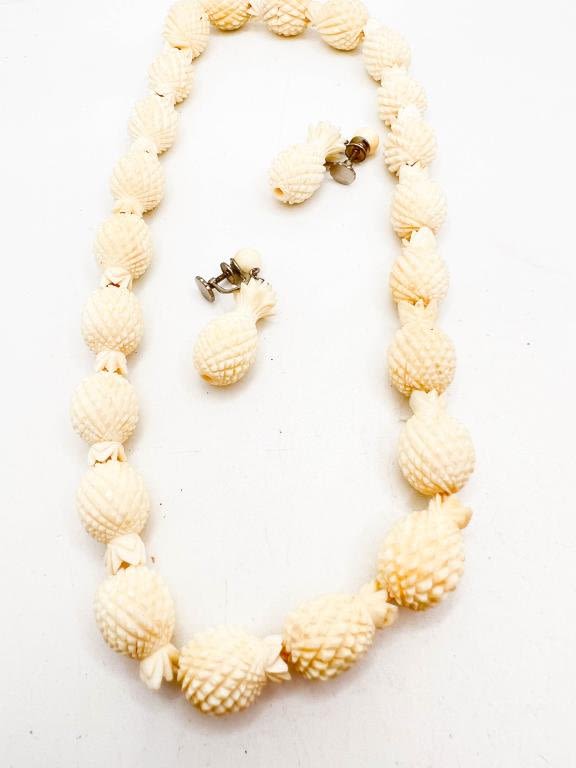 CARVED PINEAPPLE NECKLACE AND EARRINGS SET