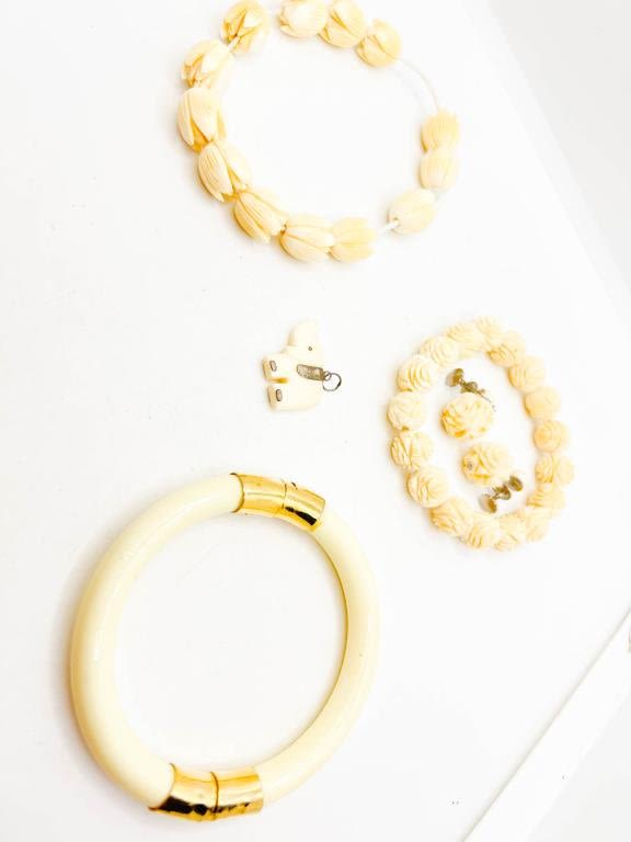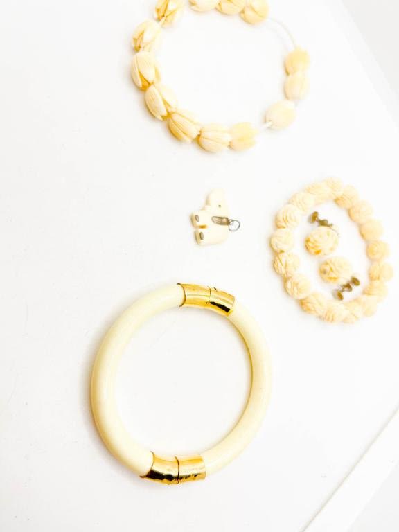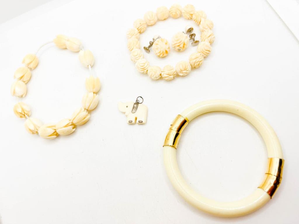CARVED BRACELETS TRIO AND ELEPHANT PENDANT