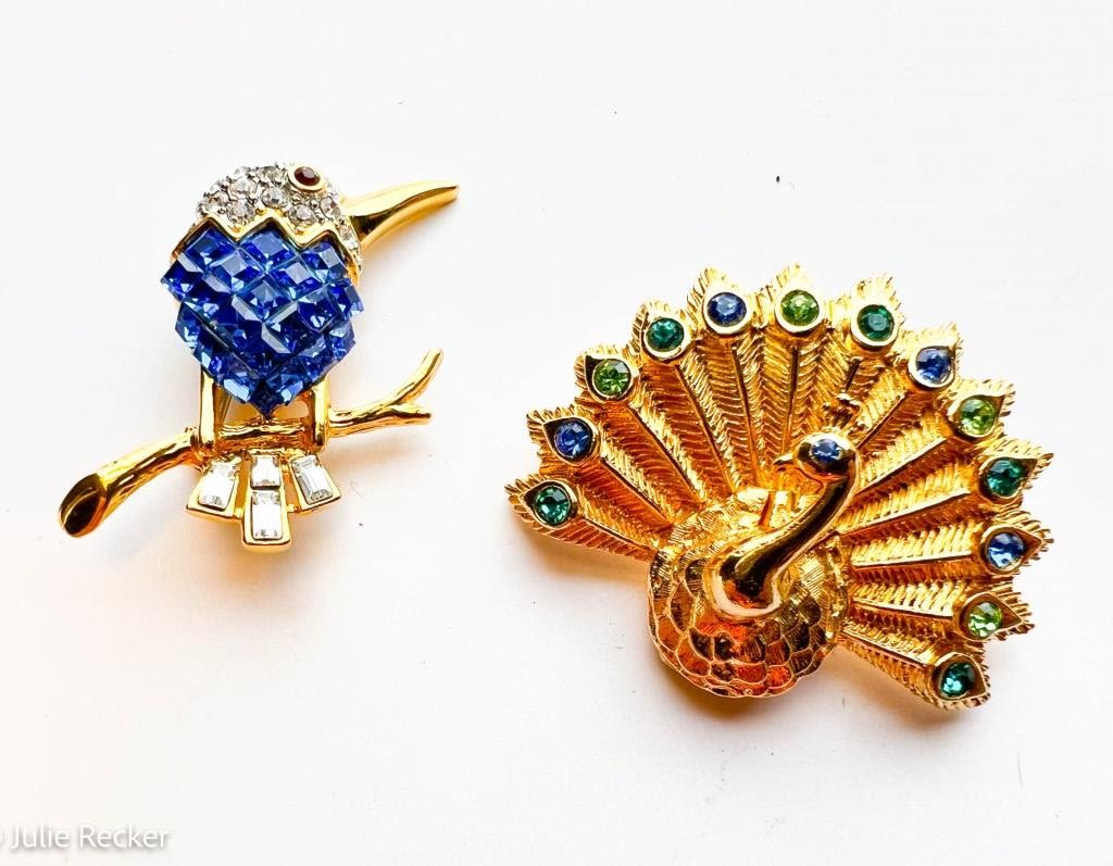 PEACOCK AND BIRD BROOCHES, STUNNING